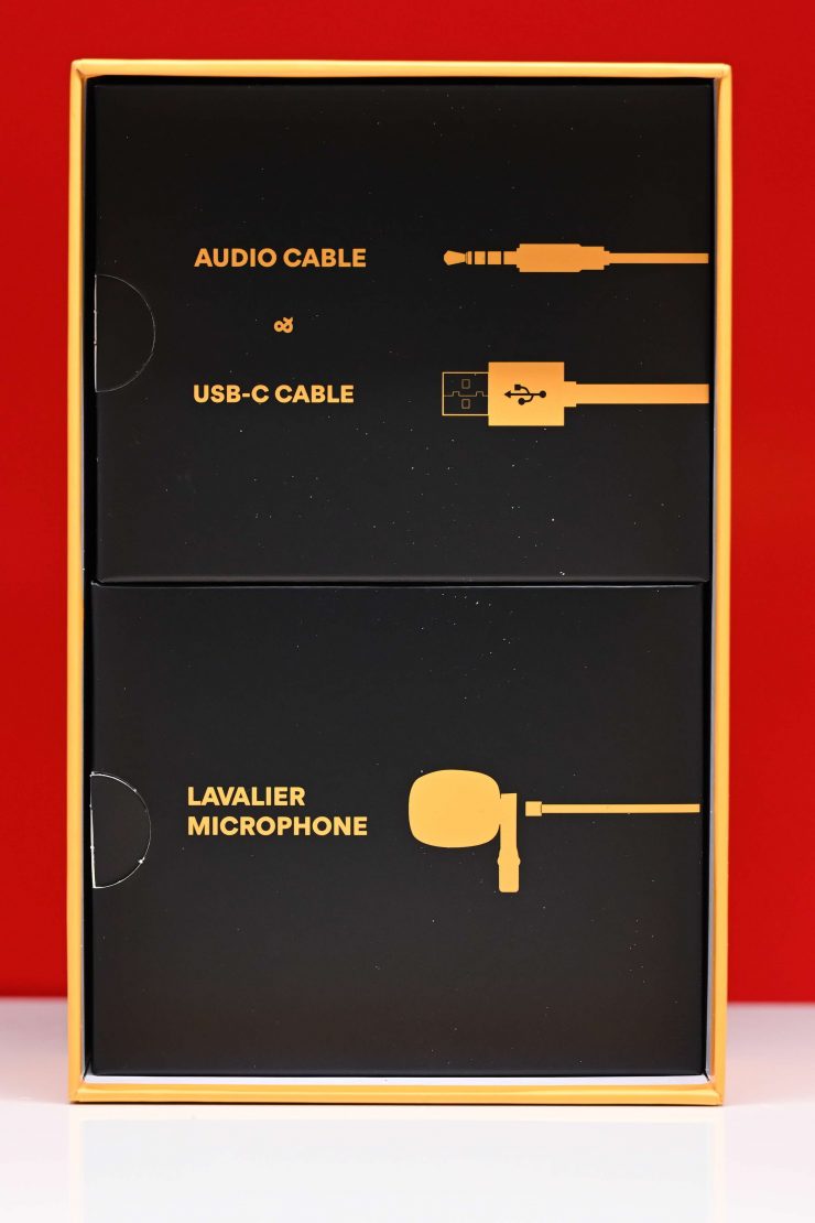 Inside the box, you get the two TX units and an RX unit, as well as the included lavalier microphones and other accessories.