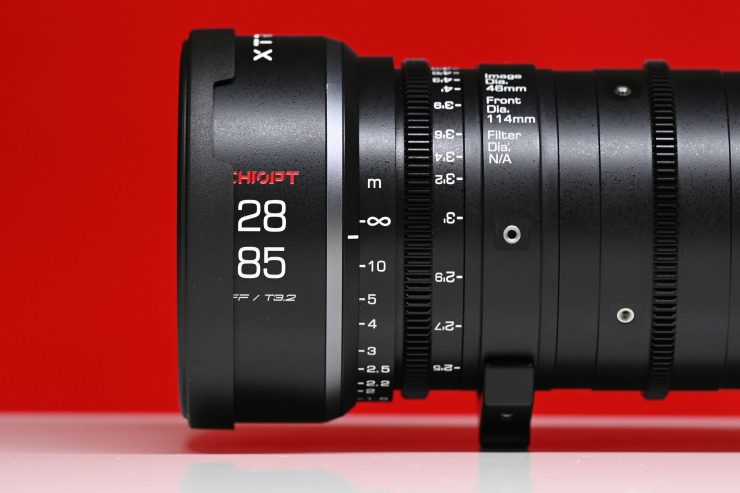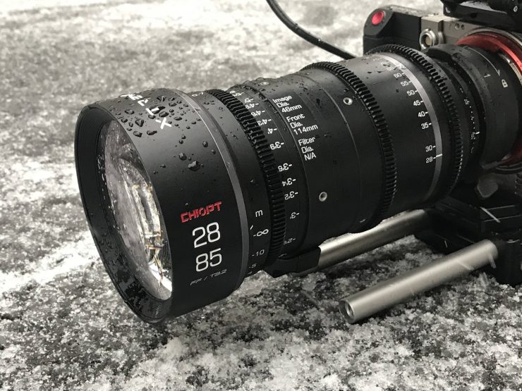 One of the biggest caveats of using a full-frame or larger sensor digital cinema camera is that the lenses become larger, heavier, and have reduced focal ranges. This is especially true when it comes to cine zooms that cover large image circles. The CHIOPT has a focal range of 28-85mm, which is reasonably decent given its size and weight.