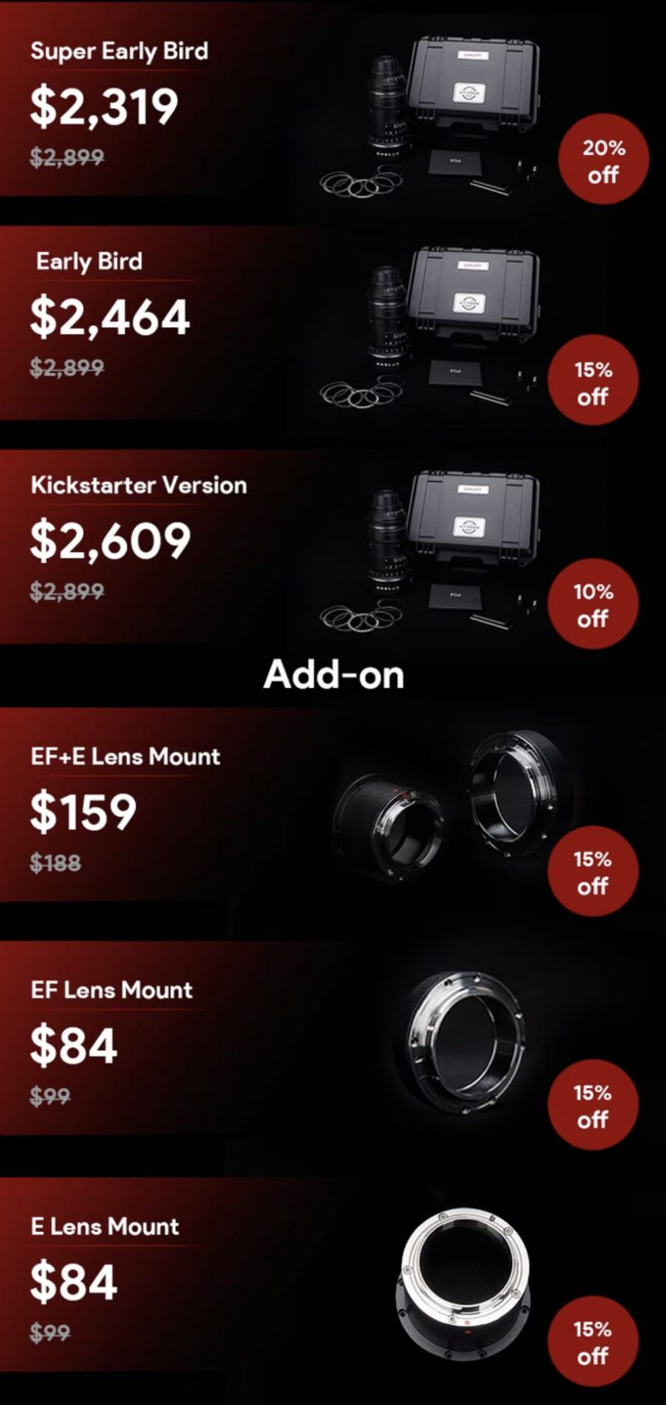 UPDATE: The lens is now available to purchase on Kickstarter for a considerable discount. Above you can see the early bird deals available on Kickstarter.