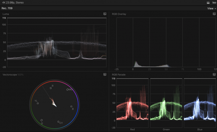 The other annoying thing is that if you have the waveform or vectorscope up and you are recording you can’t then take that waveform off the screen until you stop recording. You really should have the ability to take monitoring assist tools off the screen as well as add them while you are recording.