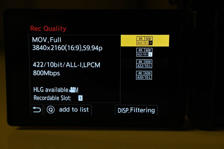 - 4K 120p in 4:2:2 10-bit