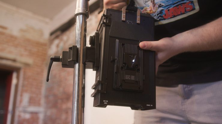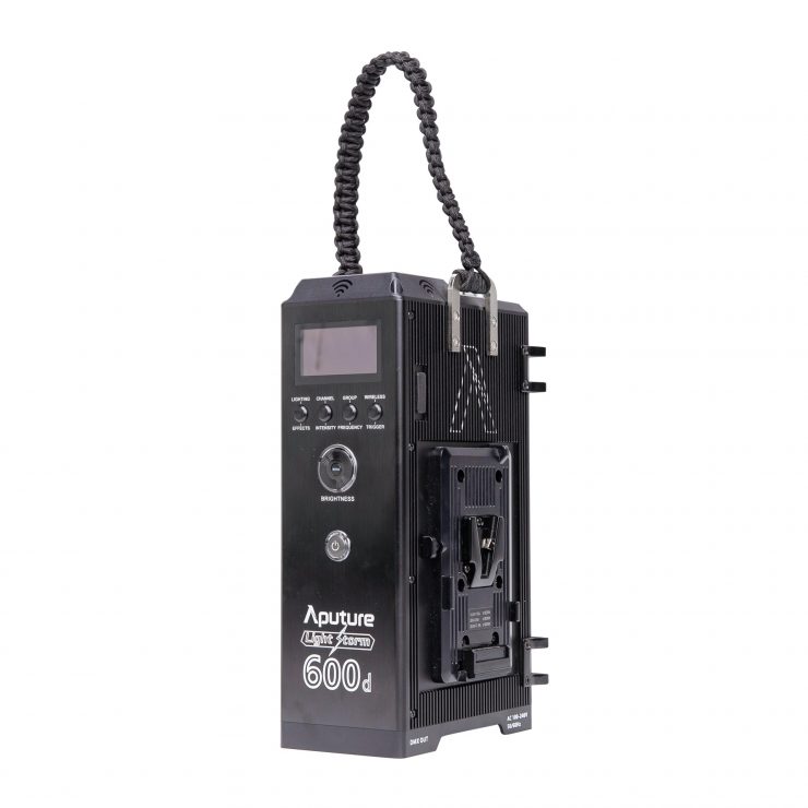 You still get two battery slots and the Aputure clamp for mounting to a stand, and the feature for using batteries for 50% output or 48V DC power source with the input on the bottom. Just like the Pro model, the inputs are on the bottom, with the main output to the lamp head on top. I was not too fond of the bottom placement as you have to lay it on its side if using AC and DMX. I get it’s a real estate issue and in order to keep it compact, it makes sense.