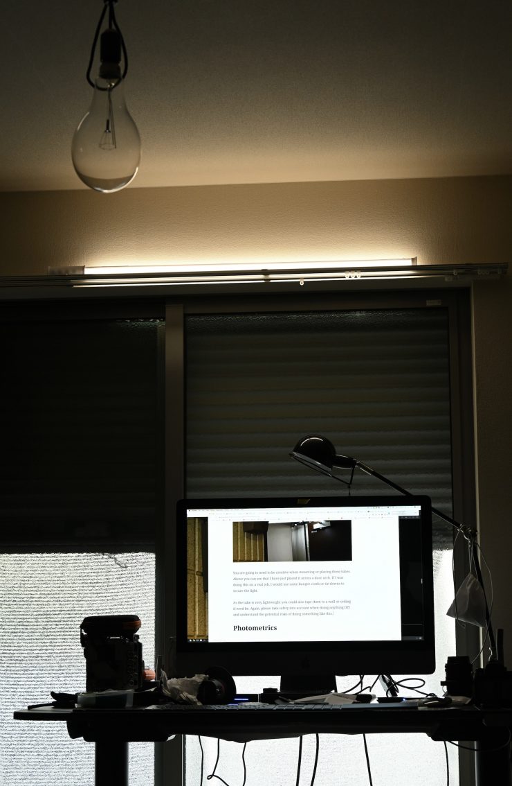 Above I have just placed one of the tubes on a curtain rail to provide a little bit of ambient fill.