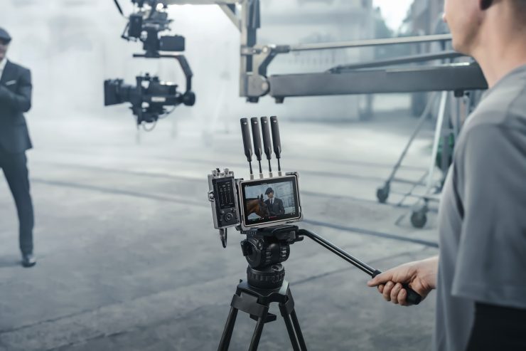 DJI’s 7-inch, 1500-nit High-Bright Remote Monitor includes an integrated receiver, eliminating the need for video cables running into a monitor. The device supports one transmitter with multiple receivers, as well as two transmission modes. In Control mode, monitoring can be carried out from two receivers at the same time, while the gimbal and camera can also be controlled remotely. For larger crews, Broadcast mode can also be enabled on top of Control mode, which will allow an unlimited number of receivers to be used.