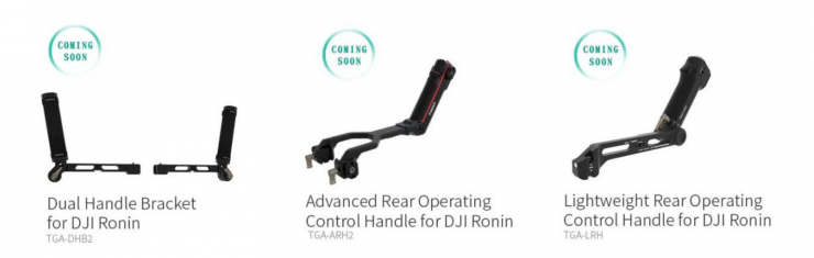 These include a Mini Table Top Tripod, Dual Handle Bracket, Advanced Rear Operating Control Handle, Lightweight Rear Operating Control Handle, Power Supply Module for DJI Video Transmitter V-mount, Battery Plate for DJI Remote Monitor V-mount, Support Handles for DJI Remote Monitor, Advanced Wooden Handles for DJI Remote Monitor.