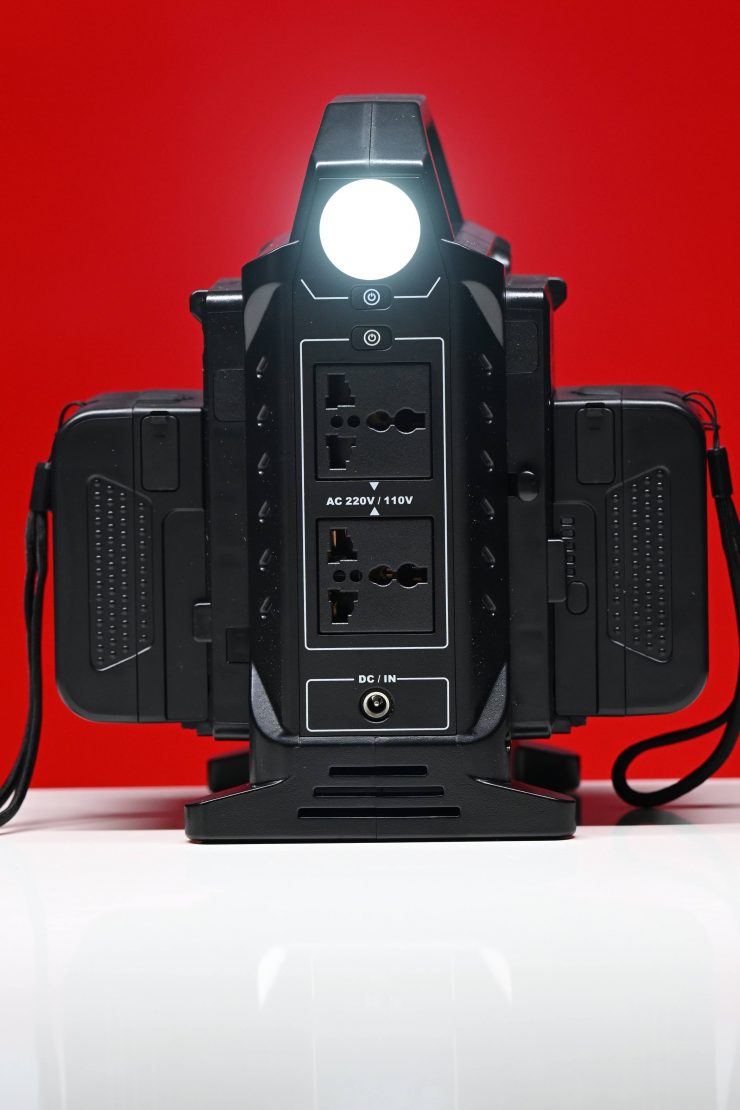 I love the integrated flashlight and in emergency situations, you could also use the Power Station to charge your laptop or phone as long as you have some V-lock batteries.