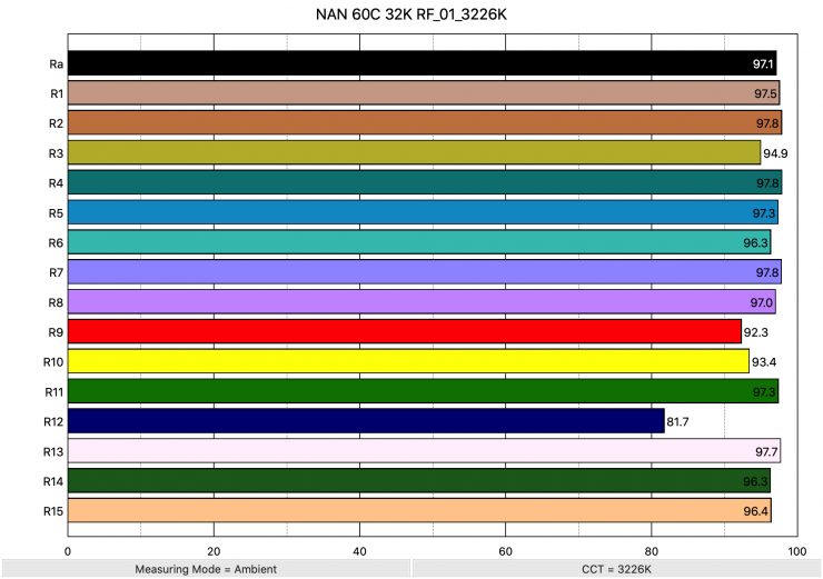 - Claimed color rendition, CRI/TLCI score of average 96/95 and TM-30 Rf average 94 / Rg average 100