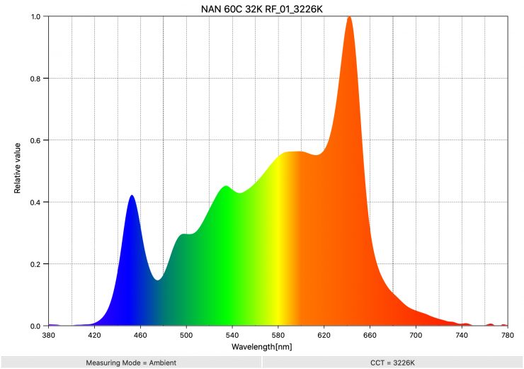 Above you can see the spectral distribution of the Forza 60C when it is set at 3200K. Again, the spectral distribution of the light isn’t that great and it isn’t overly full.