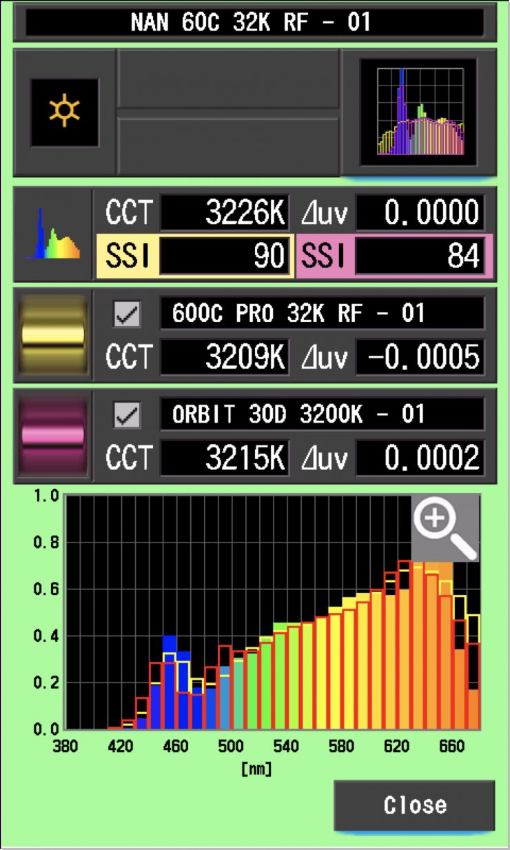 The main reason we want to record SSI scores is so we can see how well they match with other lights. As an example, I wanted to see how well the Forza 60C matched the Aputure LS 600c Pro and Nanlite Forza 700B. Below you can see the results.