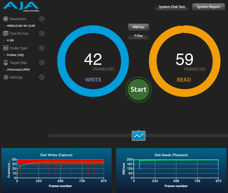 Above you can see how many frames per second the Angelbird was capable of if you were recording 4K DCI in ProRes 422HQ.