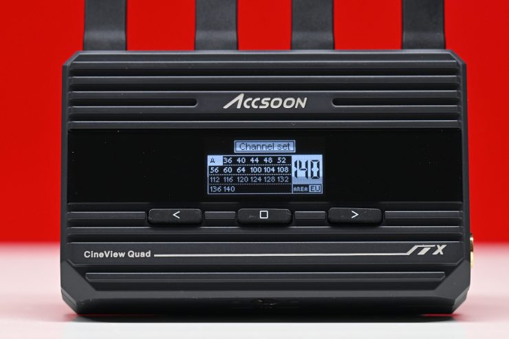 The CineView Quad also features automatic channel selection. There are 20 channels to choose from and the transmitter will automatically scan the area and find the least congested channel to transmit on.