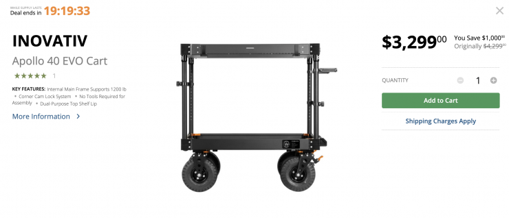 The Inovativ Apollo 40 EVO Cart is on sale for $3,299 USD which is a discount of $1,000 USD. This is a limited-time deal and is only available for the next 20 hours or so.