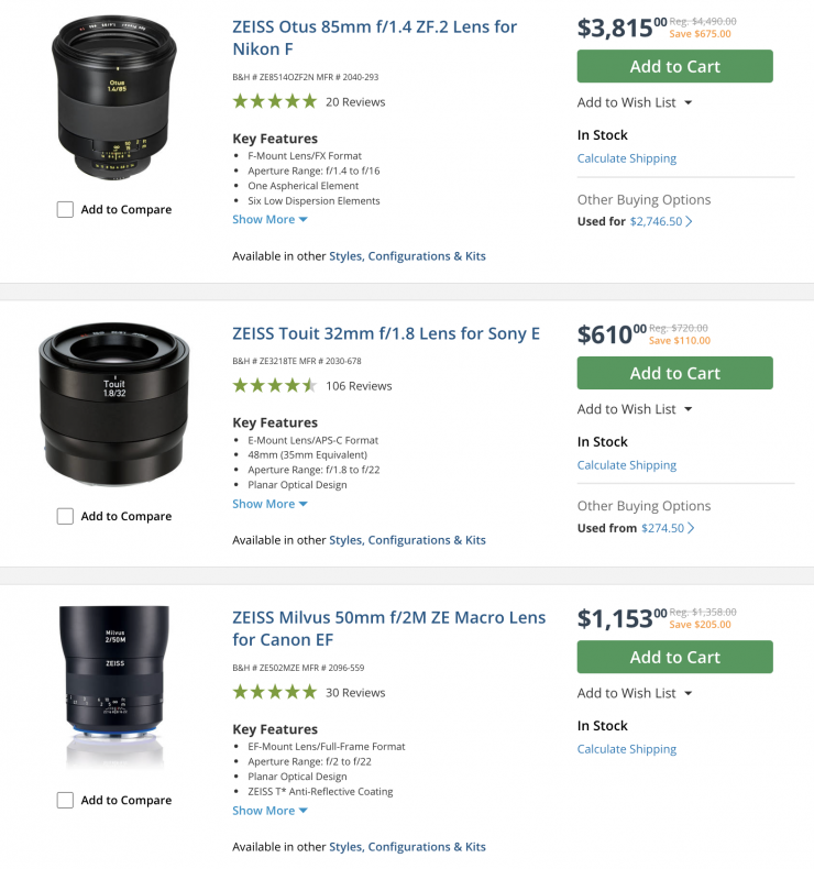 B&H has a lot of deals on lenses at the moment, and you can save up to $675 USD on select ZEISS offerings from now until the 4th of September (11.59pm EST).