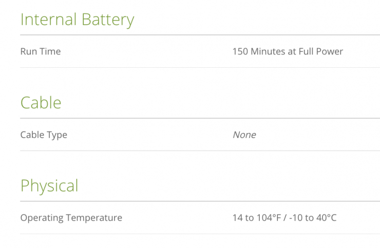 - 150 Minutes Runtime on Internal Battery
