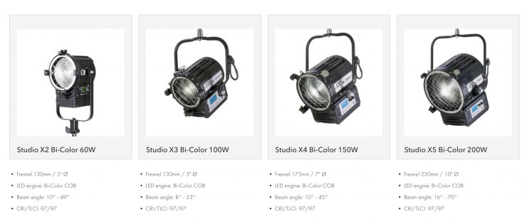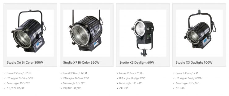 Each X-series light is available in daylight-balanced, tungsten-balanced, or bi-color. All have claimed CRI ratings over 90. Settings and adjustments can be controlled via an onboard control panel or through DMX/RDM.