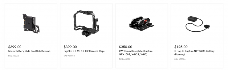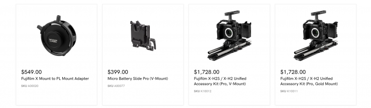 The Fujifilm X-H2S / X-H2 Unified Accessory Kit (Pro, Gold Mount / V-mount) retails for $1,728 USD.
