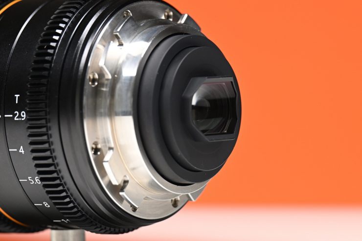 The lens is designed with an 82mm front filter thread for attaching filters or diopters. The front diameter is a standard 95mm for matte box mounting. This is the same as the 50mm 1.8x T2.9.