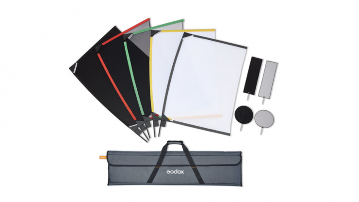 The Scrim Flag Kit from Godox is a comprehensive set of light-shaping tools to help users contour and control the light falling on their subject. The kit includes five foldable frames and five fabrics. The frames are open-ended to thwart distracting shadows.