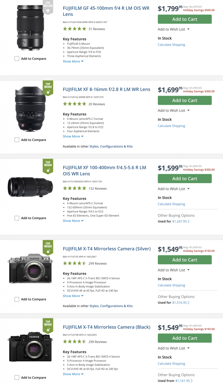 B&H has a ton of Black Friday deals on now where you can save some significant cash on a vast array of different cameras and lenses.