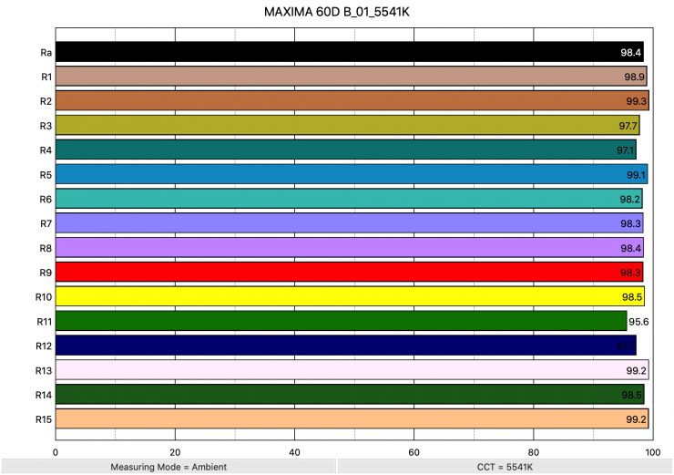 Above you can see that the Maxima 3 outperforms all of these lights when it comes to color rendering, however, the scores from ARRI and Prolycht are also very good.