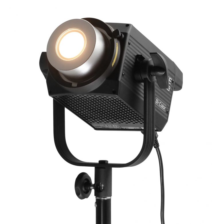 The FS200B weighs 2.6kg / 5.73 lbs without its reflector and it draws 220W.