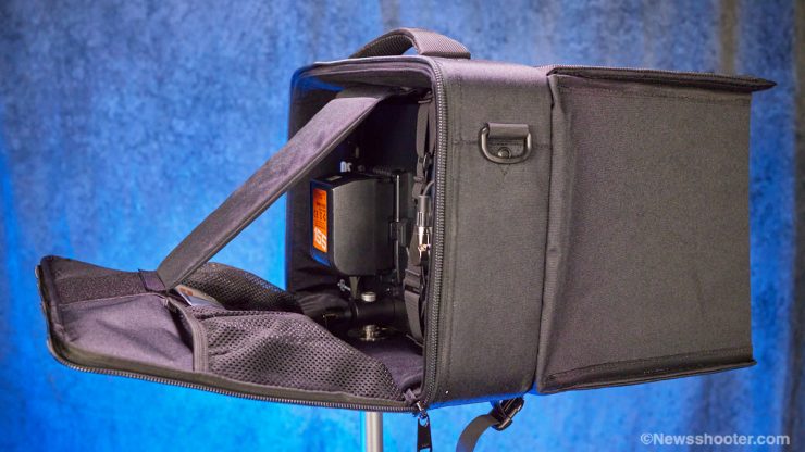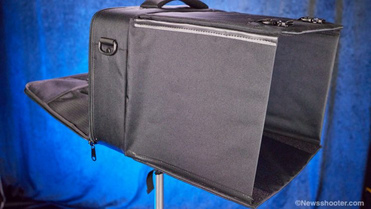 On the bottom of the case is a metal-reinforced hole that lines up with the C-stand adapter that is attached to the monitor. It’s so easy and fast to set up on a stand. If you don’t want to use the case with a hood, it’s also very easy to remove and mount it.
