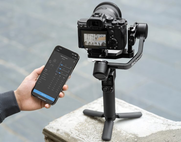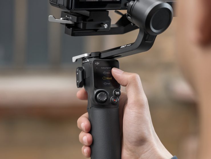 The RS3 Mini features a 1.4-inch full-color touchscreen, and an M-mode button to switch between the gimbal’s three custom modes. There is also a front dial for focusing. You can also use the Ronin app to control the RS3 Mini remotely.
