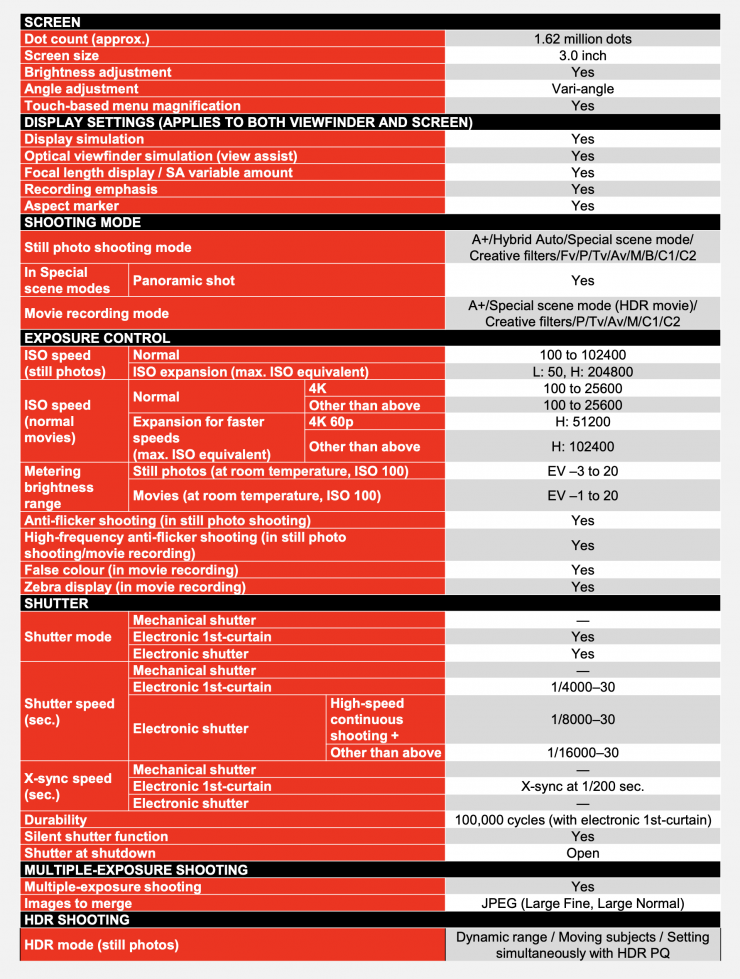 The camera features a 24.2 megapixel APS-C sized sensor and it is capable of recording UHD 4K 30p video oversampled from 6K. Automatic in-camera image merging guarantees focus when capturing subjects’ closeup.