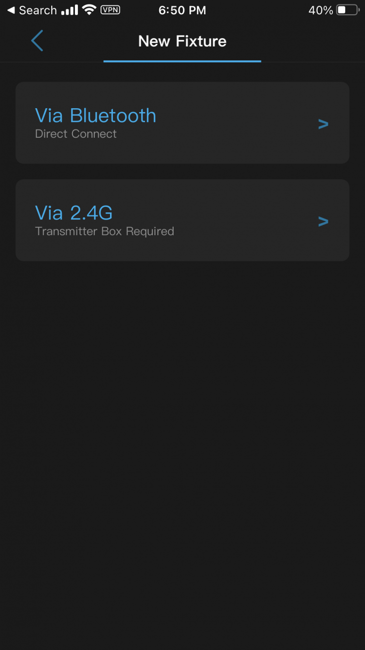 For this example I chose Bluetooth and the app will search for available Nanlite fixtures.