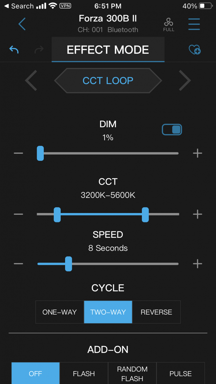 The app is straightforward and reasonably easy to use, however, they haven’t made it as intuitive or visually appealing as some other companies lighting control apps. This is something I would like to see Nanlite work on.