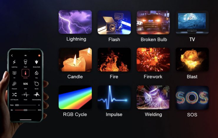 The fixture has a CCT range of 2800-8500K and it features 12 lighting effects. The intensity and speed of each effect can also be adjusted. SIRUI claims that the light has high output and exceptional color accuracy. In saying that, the claimed output figure is just 1,900 lx @1m. There is no +/- G/M correction.