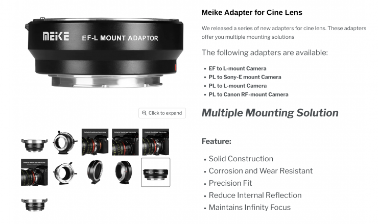 While the lens only comes in PL or EF mount, you can purchase additional MEIKE adapters so that you can use them on other systems if required.