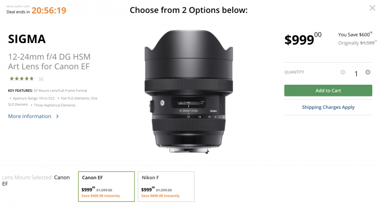 The Sigma 12-24mm f/4 DG HSM Art Lens for Canon EF and Nikon F lenses are on sale for $999 USD which is a saving of $600 USD.