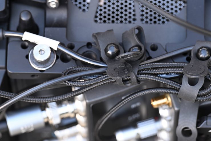 The set comes with 4 ties that have a 3/8th thread and 4 that have 1/4-20 thread to attach to cages and organize cables around the camera. If you don’t have threaded mount points available on your camera you can use the 4 adhesive Chaos Cable Ties that are in the set.