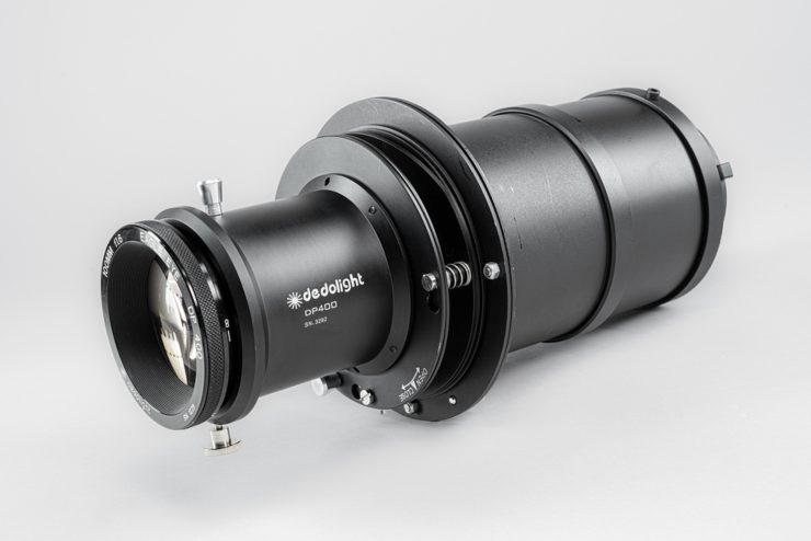 The dedolight DP400 projection system is known worldwide for its sharp and contrasty optics. Not only is it bright, but it offers even transmission from center to edge and has virtually no color fringing. There are five lenses in the system (70mm, 100mm, 150mm, 185mm, 230mm) and the three middle lenses tend to be the most popular. The 100mm, 150mm and 185mm are also the lowest size and weight and the most economical.