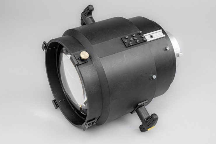 The DZOOM-P is a large 4x zoom lens designed to transmit an intense beam across a small area. It is ideal for reflecting off Lightstream or Lightbridge panels or pushing into diffusion frames. On the Orion 300 FS the beam angle of the ZOOM-BP is 8.5-36 degrees and can reach 81,000 lux (2m@5600K). On the Orion 675 FS the beam range is 6.9-33 degrees and can reach a claimed figure of 99,000 lux (2m@5600K).