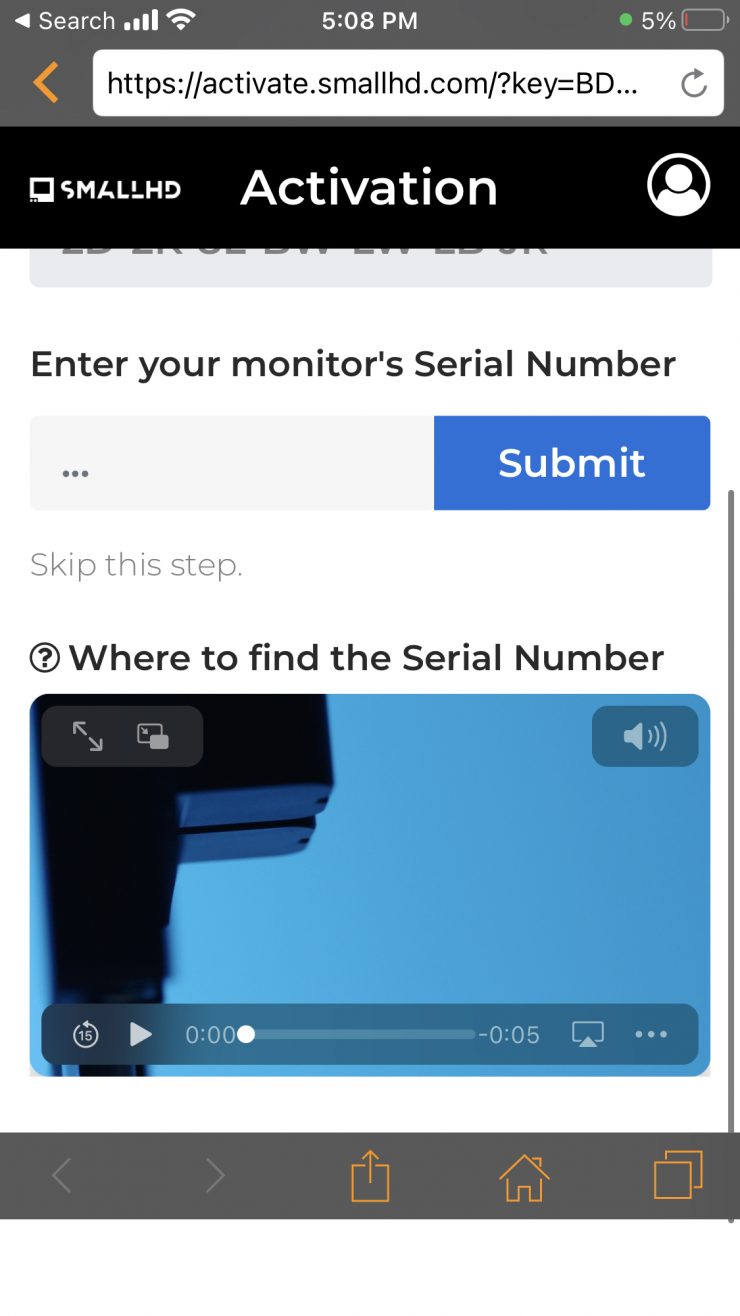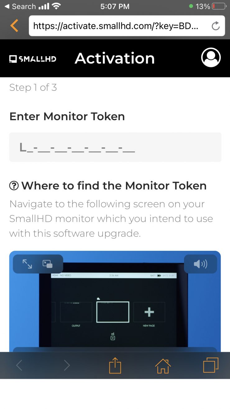 The first thing you need to do is activate the camera control. Your license kit comes with a card that has your activation code as a special link in a QR code. All you need to do is go to the SmallHD Activate camera Control page and enter your activation code or scan the QR code with your smartphone.