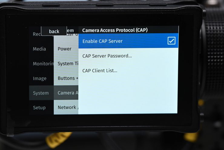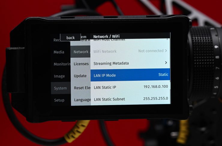 Now, there are some caveats depending on the camera. If you are using an AMIRA, the Ethernet port is located behind the media door, so the door has to be open to use it. This is fine for interviews on a tripod, but unusable if you have the camera on your shoulder.