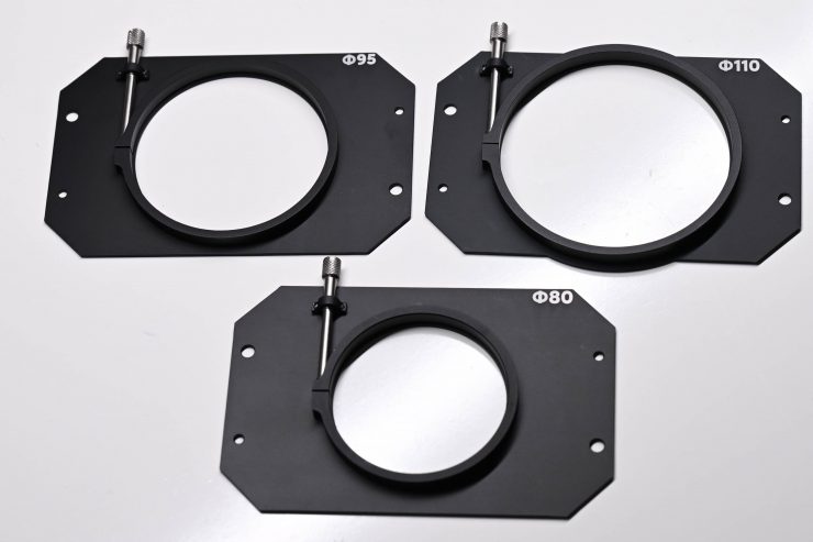 Movmax gives you 80mm, 95mm, 110mm, and 114mm lens adapter plates in the kit. While this covers quite a lot of lenses, it would have also been nice to have seen an adjustable rubber donut included so you could use it on more lenses as long as you were attaching the Hurricane to the rod mount adapter.