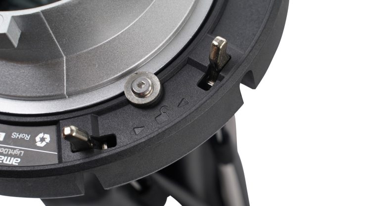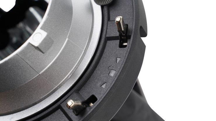 The Light Dome Mini SE’s eight support rods snap easily into place when deploying the soft box. To tear down, each support rod is quickly collapsible via quick-release latches located near the Bowens Mount speed ring. Users can collapse two rods at a time using a pinching motion to disengage each pair of latches.