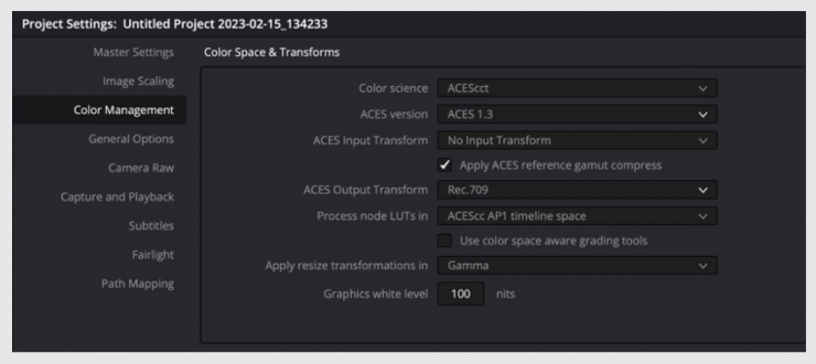 If you are using ACES leave the ACES Input Transform as “No Input Transform”. Do NOT select the legacy “Sony RAW” input transform. Resolve will read the X-OCN file metadata and set the correct input transform for each clip.