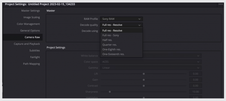 The global raw decodes settings can be changed in the Project Settings under Camera Raw when the Sony Raw Profile is selected.