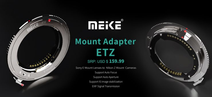 The Meike Mount Adapter ETZ for Sony E Mount Lenses to Nikon Z Cameras is now available to purchase for $159.99 USD.