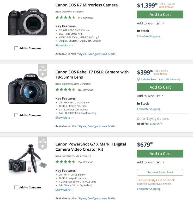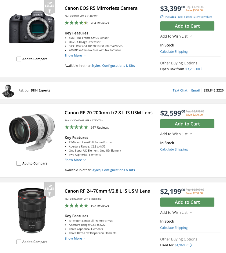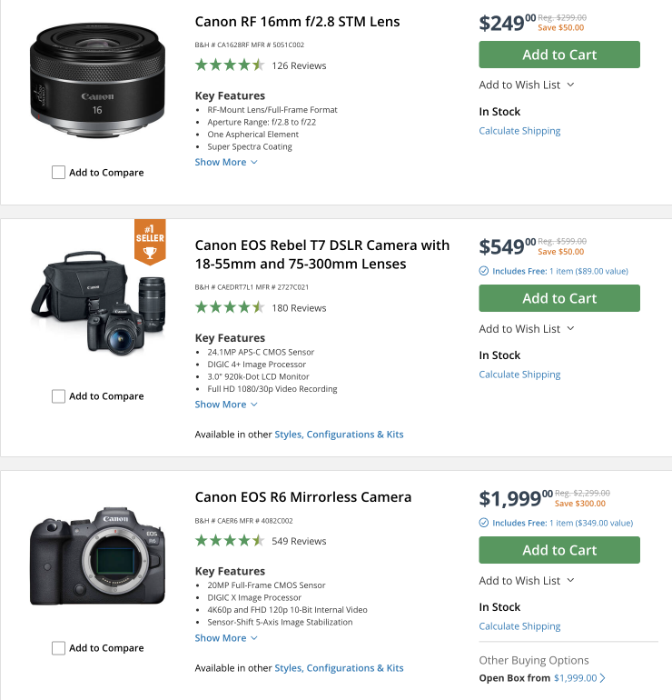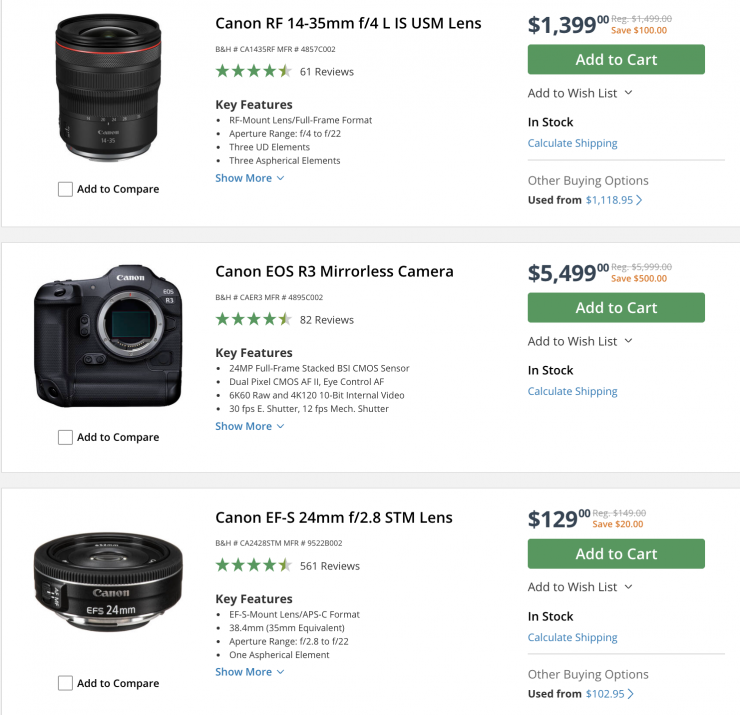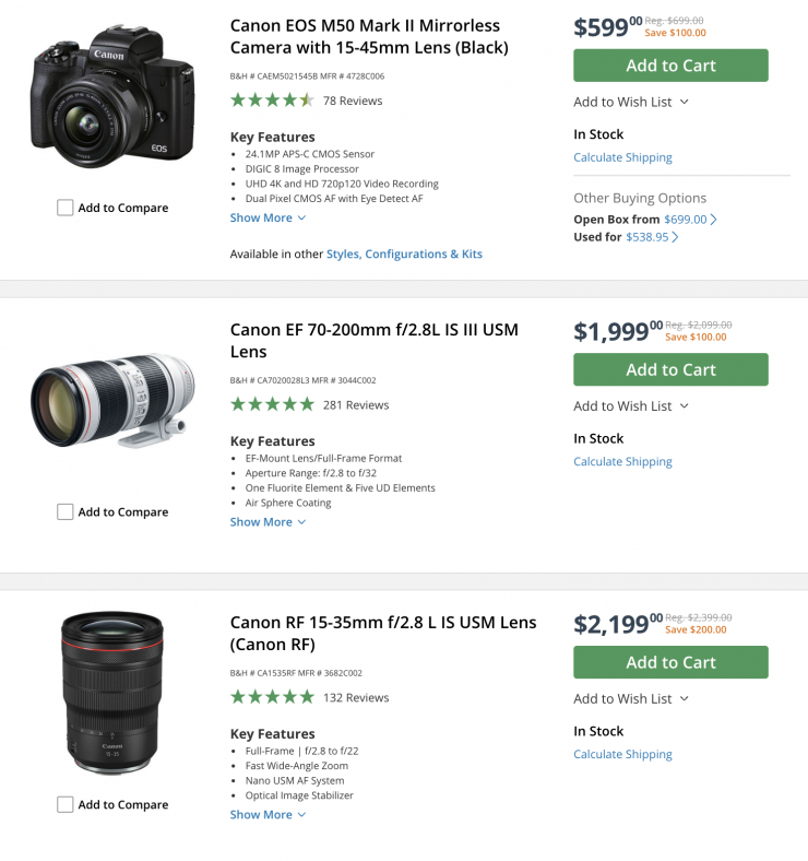Canon Cameras & Lenses (save up to $500 USD)