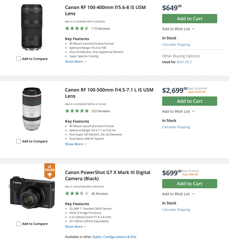 B&H has some good deals this week that may be of interest to some of our readers. These range from cameras and lenses to monitors, lights, and camera media. etc.