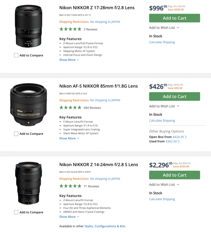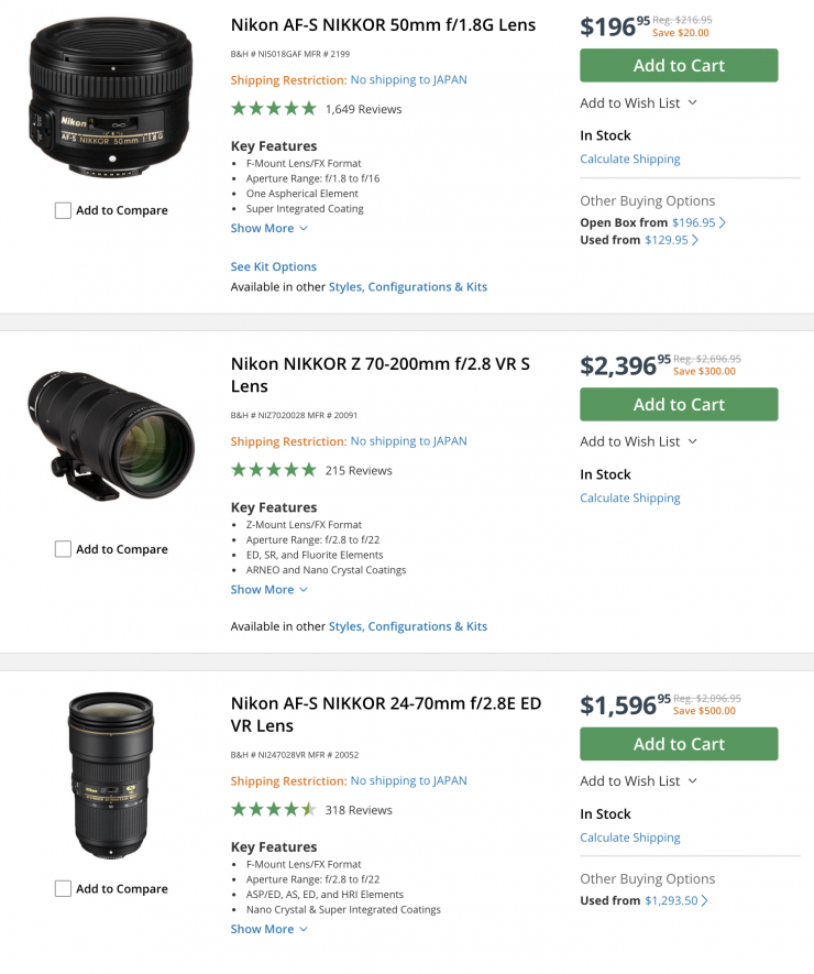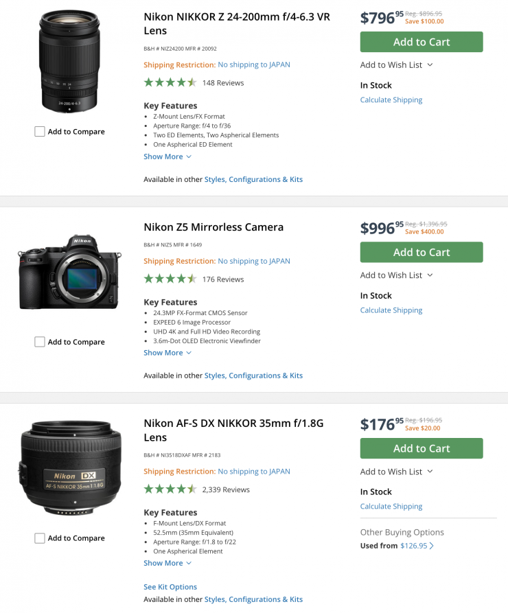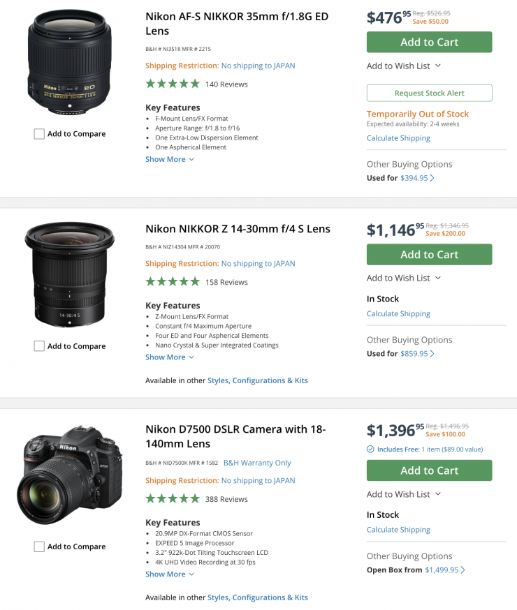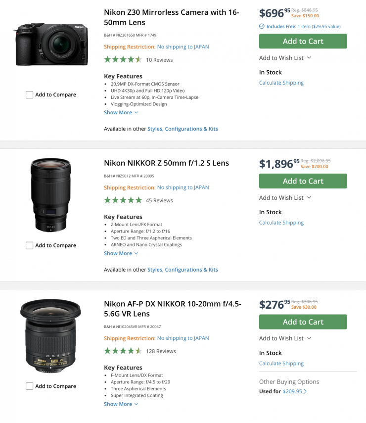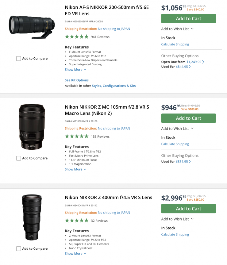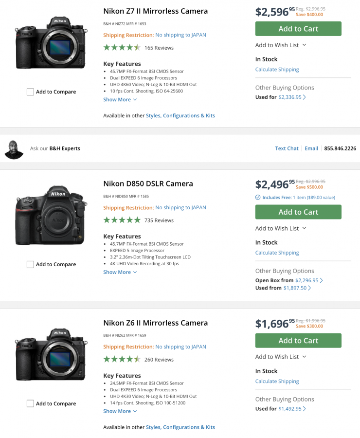Nikon Cameras & Lenses (save up to $500 USD)