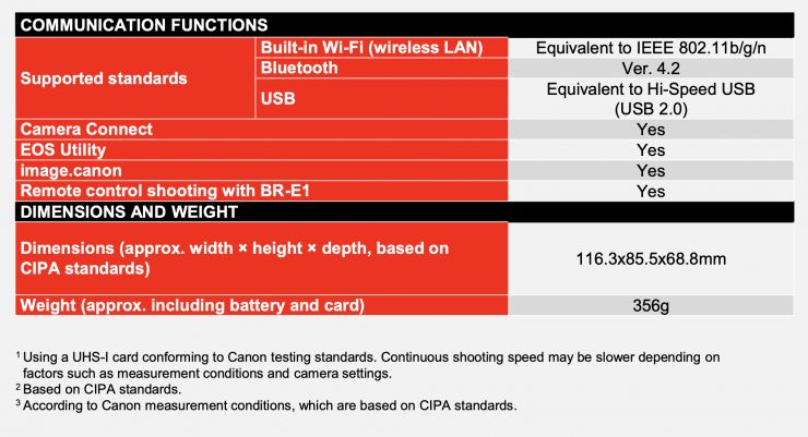 The EOS R100 weighs in at 356g / 12.87 oz, which makes it 19g lighter than the EOS R50 and 73g lighter than the EOS R10.