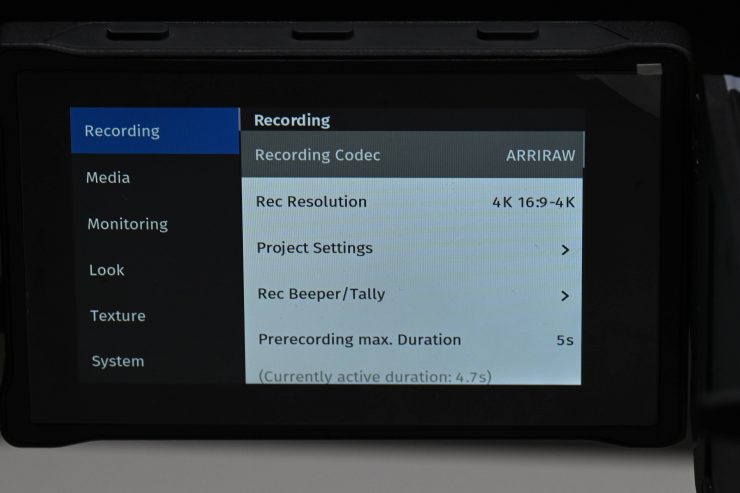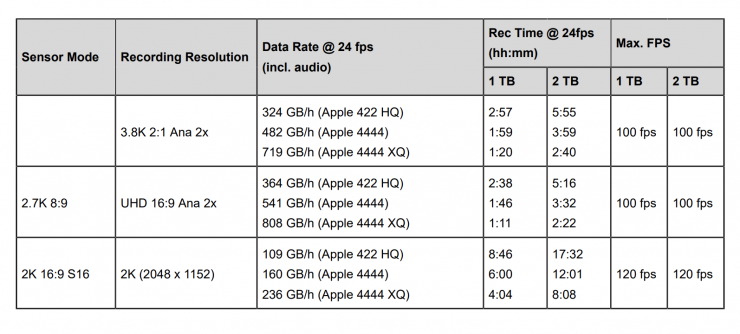| Recording Formats | MXF/ARRIRAW MXF/Apple ProRes 4444 XQ MXF/Apple ProRes 4444 MXF/Apple ProRes 422 (HQ) |
