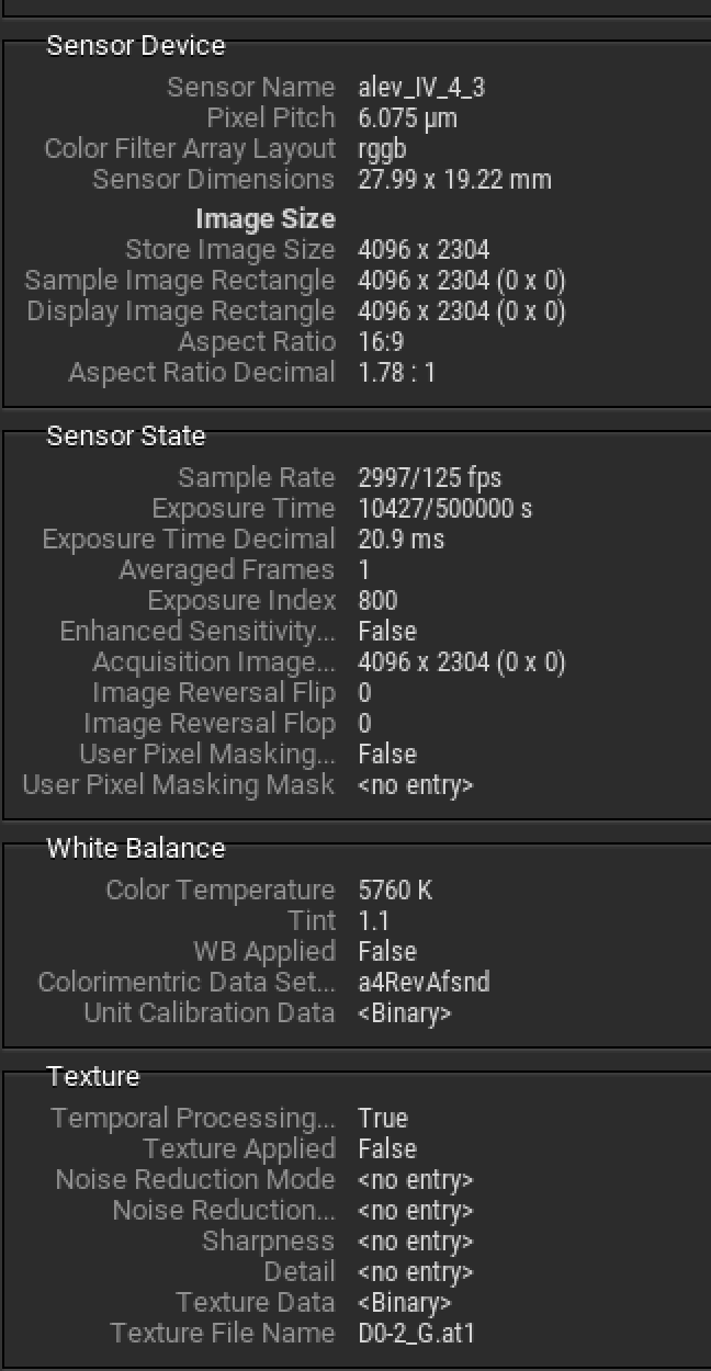 | Sensor Type | ARRI ALEV IV 4:3 CMOS sensor with Bayer pattern color filter array |