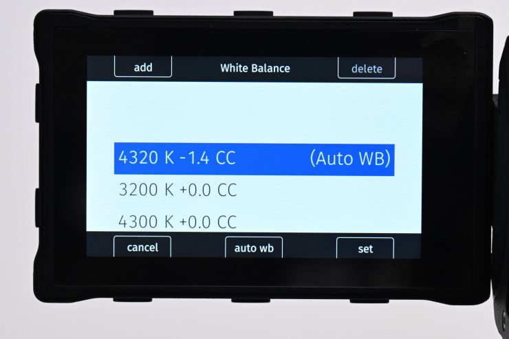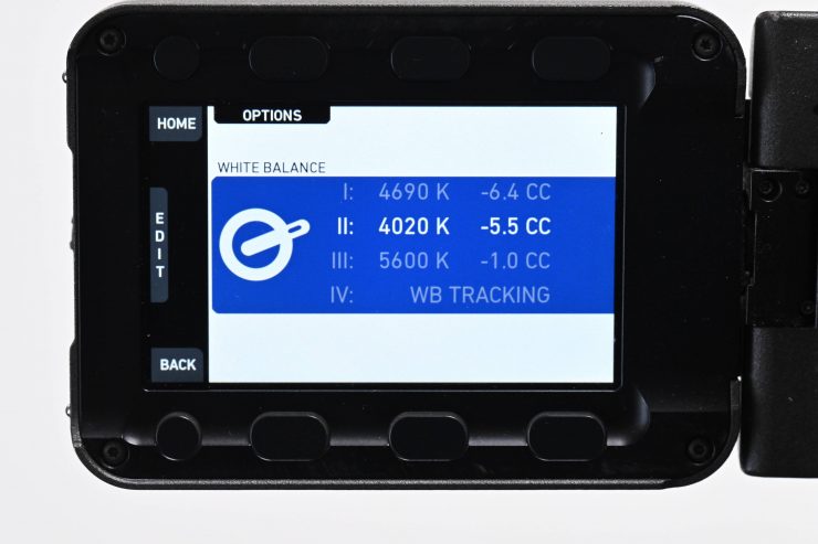 | White Balance | Manual and auto white balance, adjustable from 2000K to 11000K in 10K steps Color correction adjustable range from -16 to +16 CC 1 CC corresponds to 035 Kodak CC values or 1/8 Rosco values |